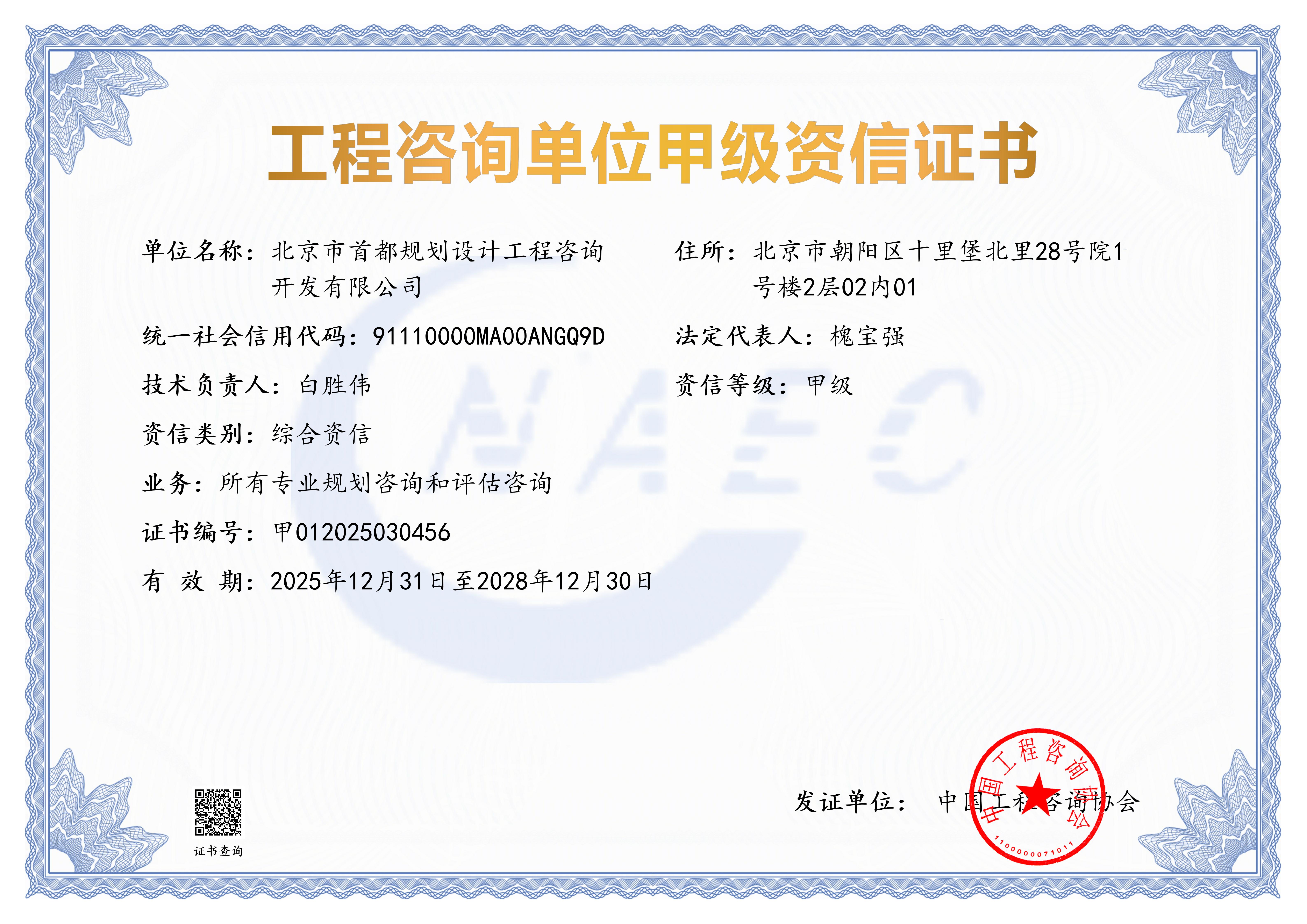 首都规划咨询水文、水资源调查评价单位水平评价证书